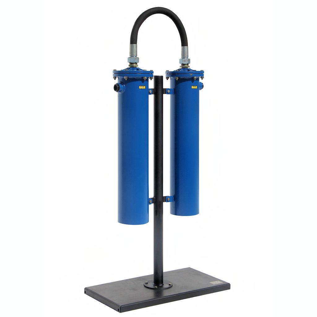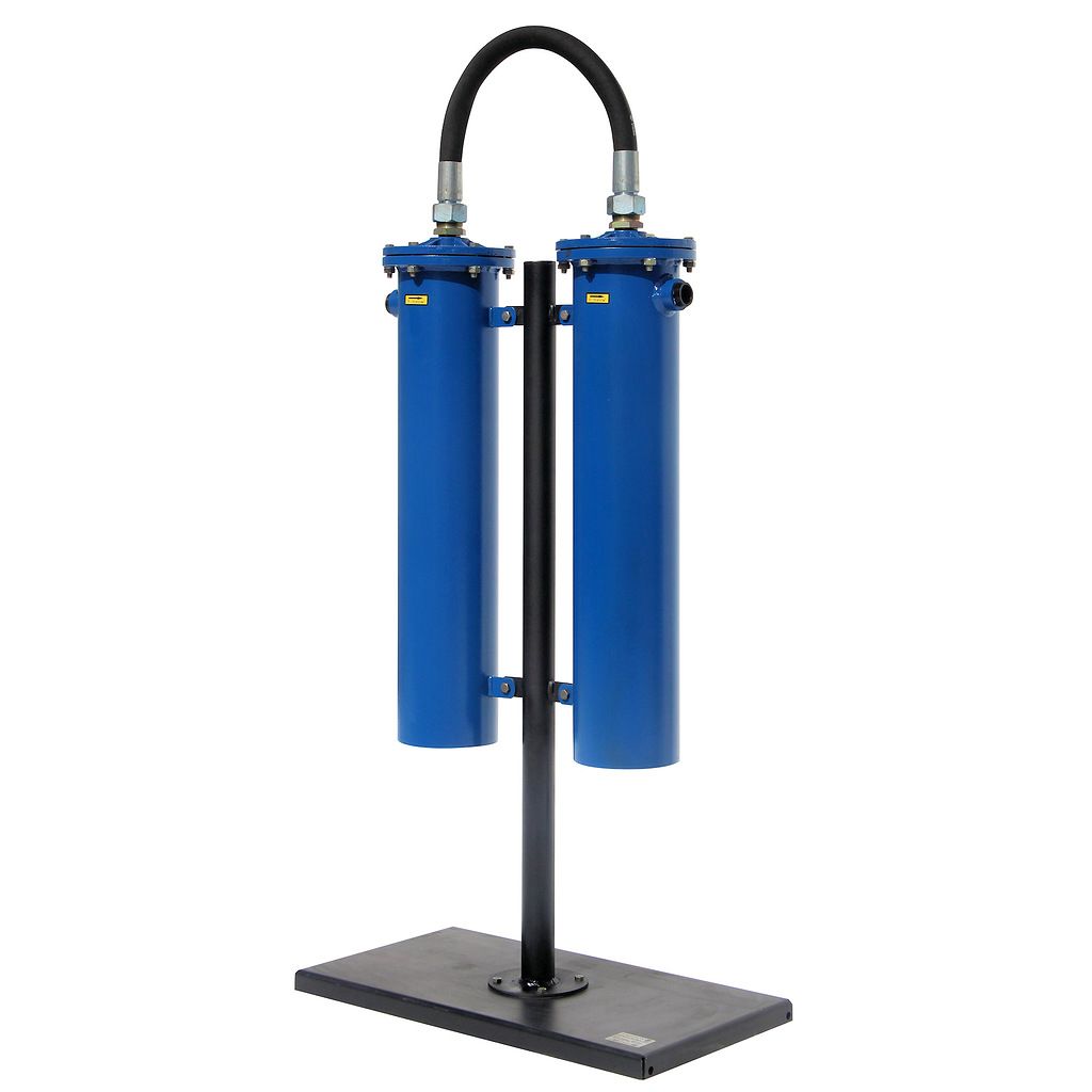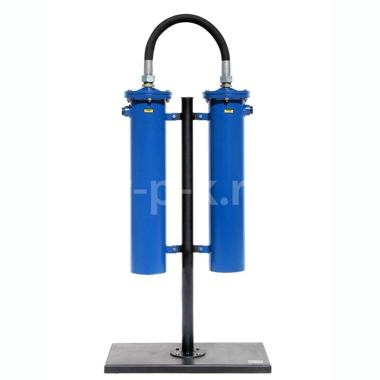 Фильтрационный модуль – двухступенчатый; состоит из двух последовательно объединенных блоков очистки (фильтров). Корпус блока очистки изготовлен из стальной трубы. На корпусе имеется патрубок (с внутренней резьбой см. таблица 2 для конкретной модели) для подвода-отвода магистрали сжатого воздуха. Торцы корпуса закрываются крышками. В нижней крышке для слива конденсата имеется резьбовая пробка (G3/8").