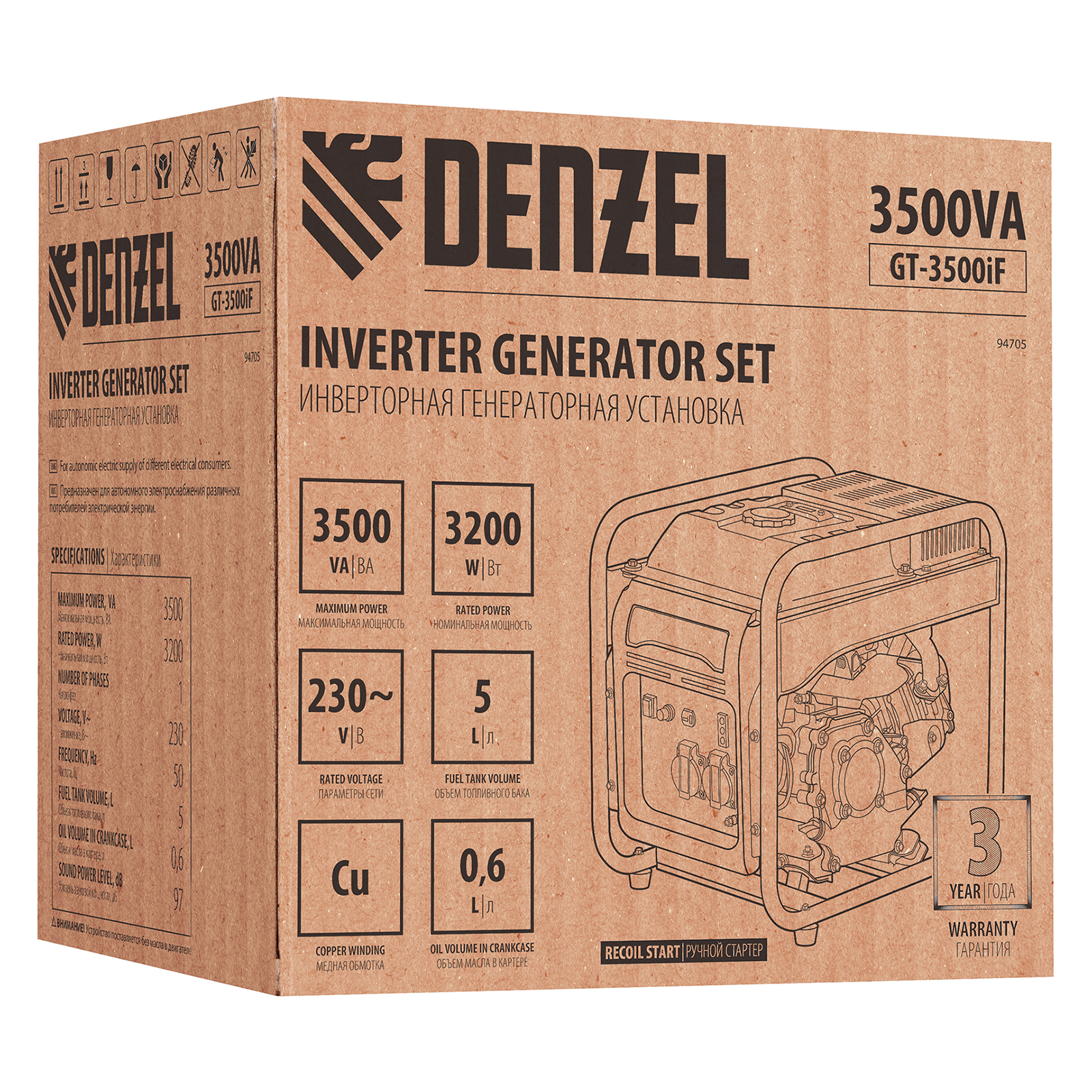 Бензиновый генератор DENZEL GT-3500iF 94705: характеристики